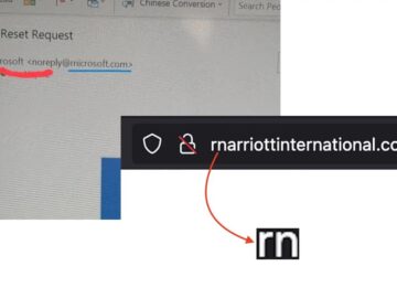 Marriott International ve Microsoft müşterilerini hedef alan karmaşık bir “homoglif” kimlik avı kampanyası. Saldırganlar, “m” harfini “rn” (r + n)…