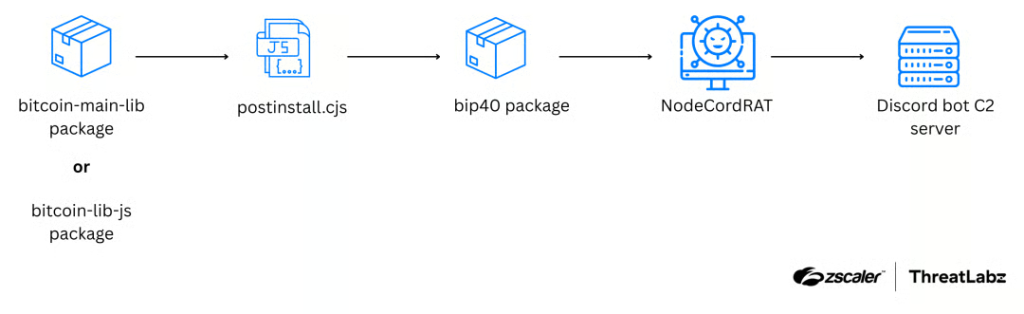 Zscaler’in blog yazısında şöyle yazıyor: “Bip40’ı diğer kütüphaneleri tamamen atlayarak bağımsız bir paket olarak indirmek de mümkün. Saldırgan, geliştiricileri sahte paketleri indirmeye ikna etmek için meşru bitcoinjs projesi içinde bulunan gerçek depoların isim varyasyonlarını kullandı.”