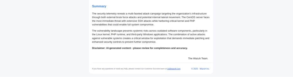 By embedding AI into Wazuh Cloud, organizations gain a scalable security ally that grows with their infrastructure and strengthens their ability to respond to threats.