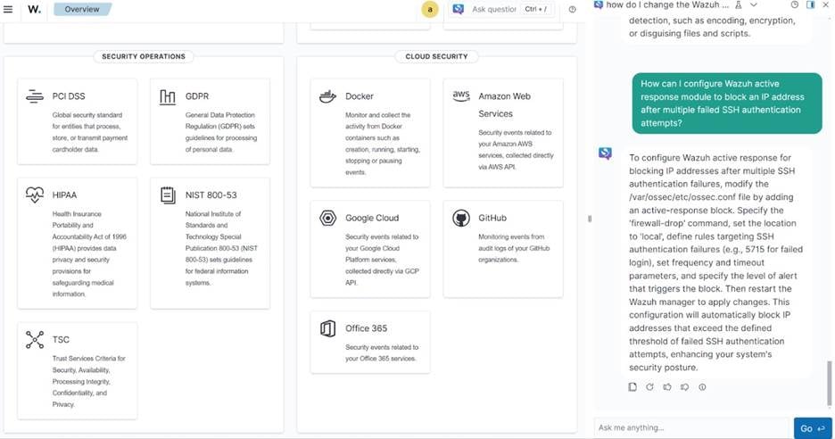 Prompt example: “How do I configure active responses for brute-force attempts?”