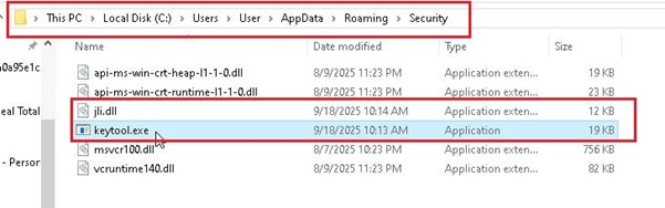 İlk komut dosyası bu dosyaları %APPDATA%\Security